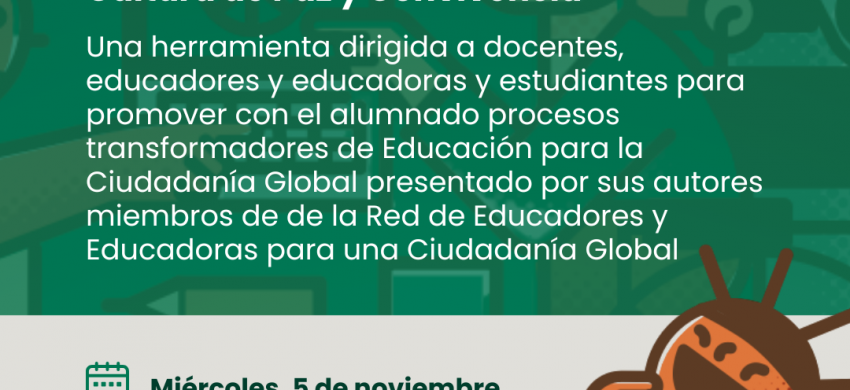 Datorren 2025eko azaroaren 5ean, 17:30ean, webinar bat egongo da, EDUCOk antolatuta, “Bakearen kultura eta eskola bizikidetza positiboaren Gida”ri buruzkoa. Gida hori Sarearen Zaintza eta Inklusioa lantaldeko pertsona batzuek egin dute, eta 2025eko urrian argitaratuko da. Parte hartzeko data hau agendatzera gonbidatzen zaituztegu. Izena emateko eta informazio gehiago lortzeko, esteka honetara jo dezakezue: https://www.ub.edu/idp/web/ca/cursos/paz